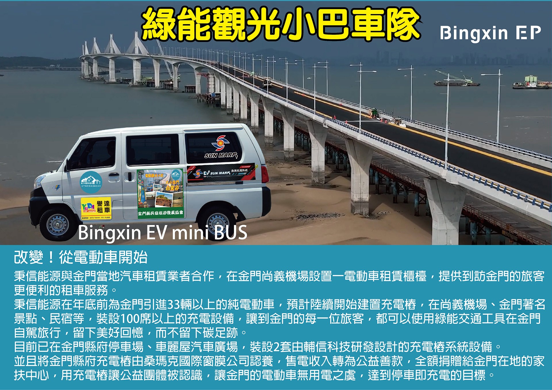 我們成立於2009年,除了租車事宜, 任何有關金門吃喝玩樂的需求都可以詢問我們, 希望我們可以為您盡上一點微薄之力。 期許我們可以讓每一位來金門的旅客都可以開開心心。 關於吉品 Company Profile 最新優惠 Latest News NEWS Nov 02 2022 近期將推出E-veryca 電動車租賃 為大家服務 車款介紹 Product Info